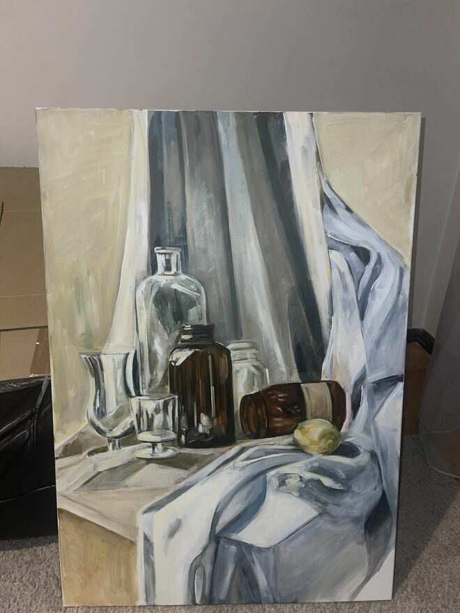 Sprzedam obraz, martwa natura idealnie wpisująca się w słowo harmonia i spokój, jasne barwę co właśnie nie podrażniają a uspakajają, wymiar 100 na 70 dość duży ale na duże ściany jest piękny !Yana Tratsiak